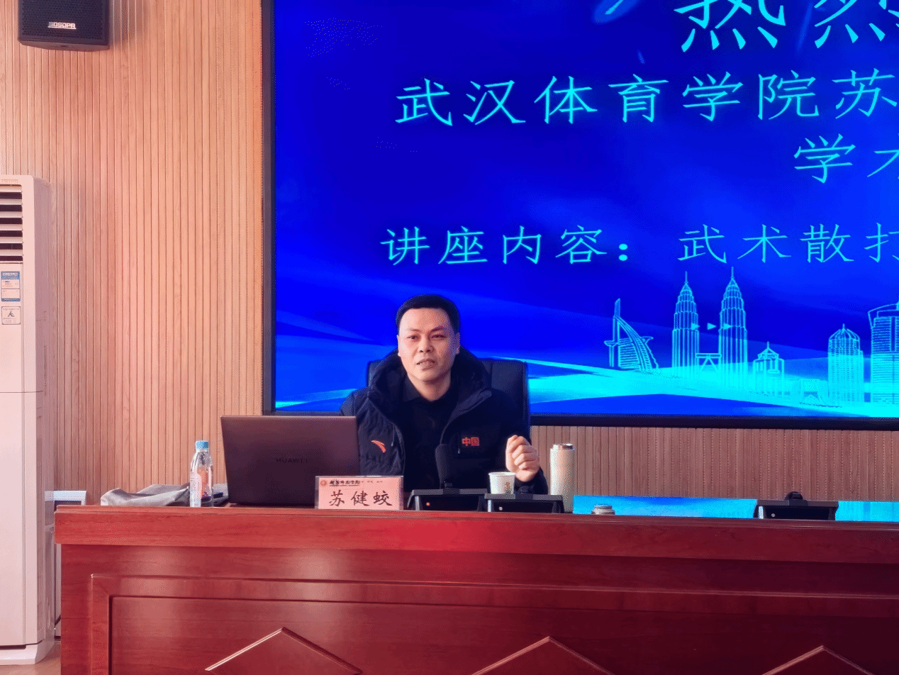 12月24日,于文科楼B206。武汉体育学院苏健蛟教授莅临我院开展了题为《武术散打科学化训练的理论与实践》的专题讲座。本次讲座由365英国上市集团副院长谢明正主持、部分硕士生导师、2023级全体研究生参加讲座。