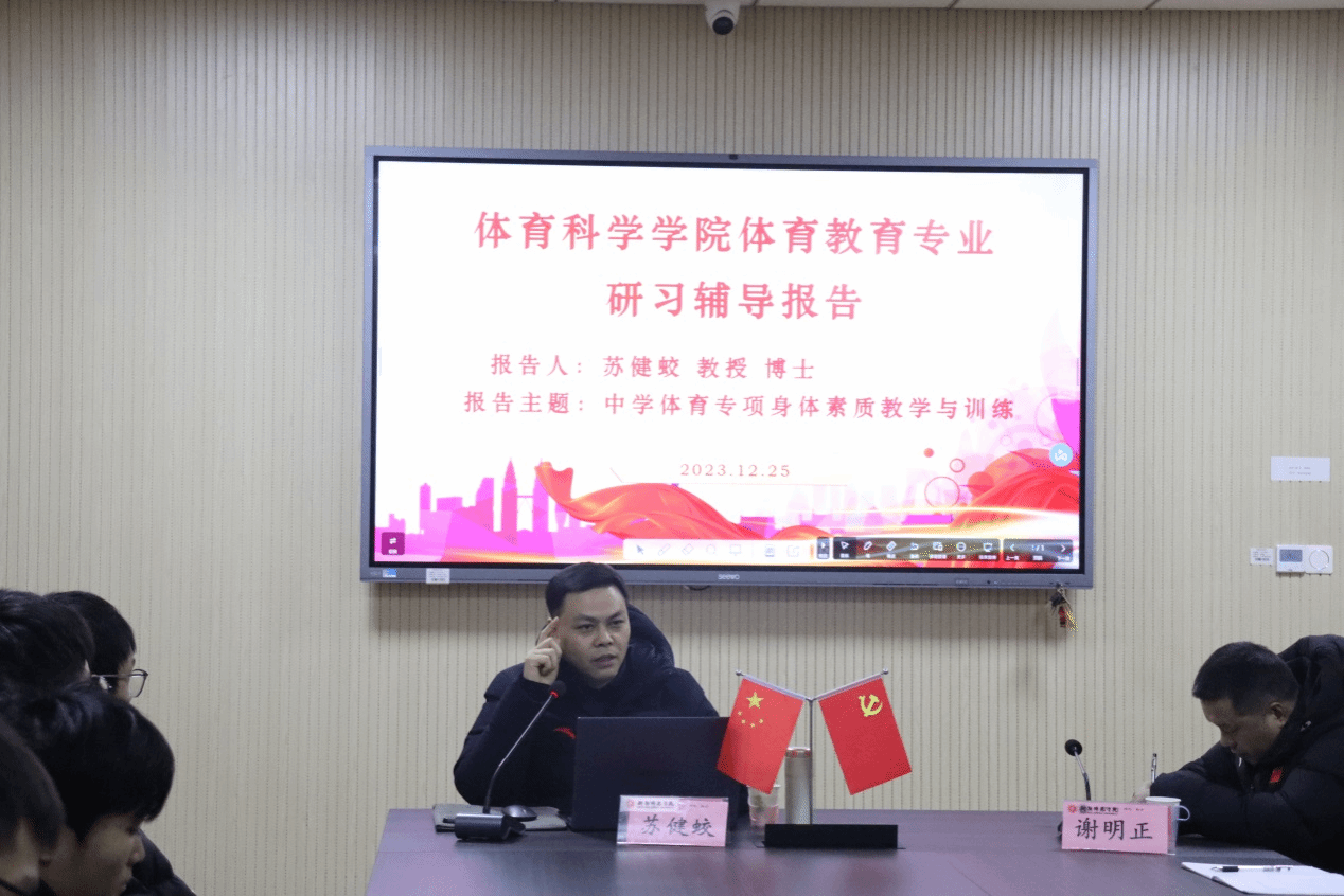 2023年12月25日,武汉体育学院苏健蛟教授应邀在文科楼B301开展以“中学体育专项身体素质教学与训练”为主题的研习辅导报告。365英国上市集团副院长谢明正主持了本次讲座,2020级体育教育专业学生积极参会。