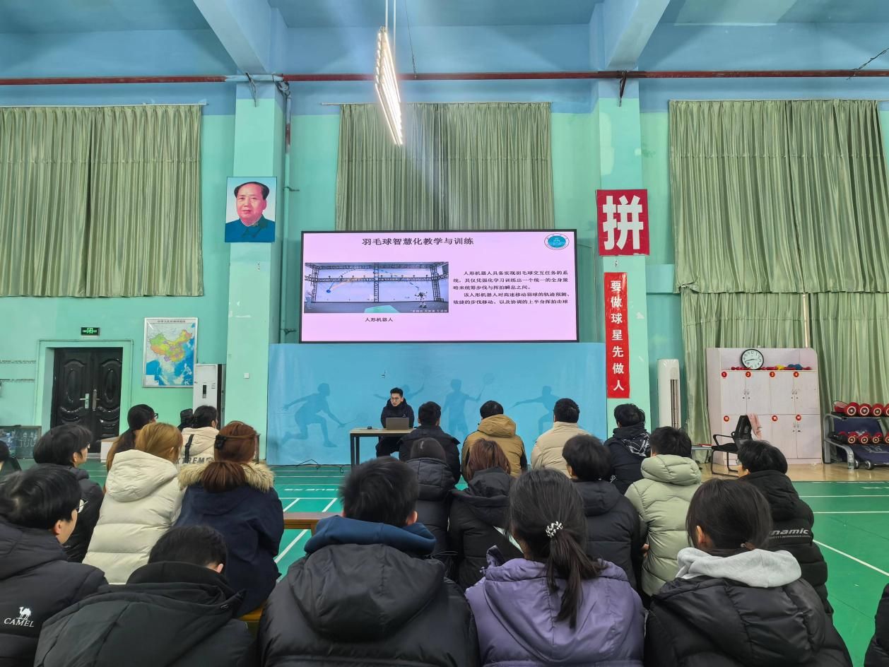 2025年3月29日上午,山西大学体育学院博士研究生王超超应邀在我院羽毛球体育馆作题为《体育智慧化教学与训练——以羽毛球和体适能为例》的专题讲座。副院长谢明正主持活动,体育教育专业22级羽毛球“卓越教师实验班”全体学生及相关专任教师参会。