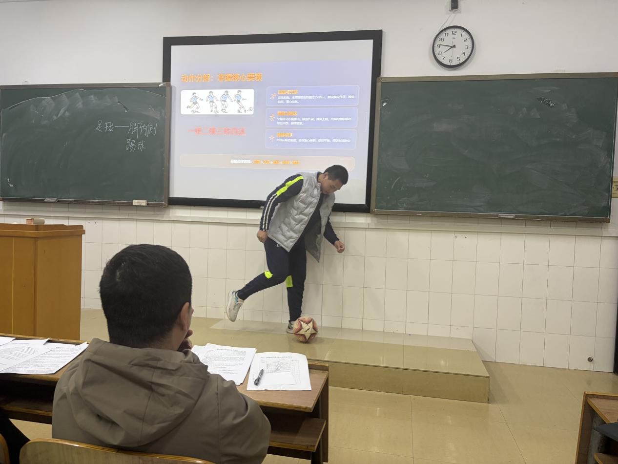 比赛顺序通过现场抽签确定,严格遵循既定规则开展。参赛选手围绕中学体育课程自选教学内容,精心准备8分钟多媒体片段教学,同步结合PPT演示与板书设计,全面展现自身的教学设计、教学方法、课件制作、粉笔字书写及课堂把控能力等师范素养与专业技能。比赛中,选手们沉着应战、各展所长,将实习期间积累的教学经验与专业知识充分融入课堂展示,呈现出一场场生动鲜活、各具特色的教学演练,充分展现了我院师范生扎实的专业基础与良好的教学潜力。