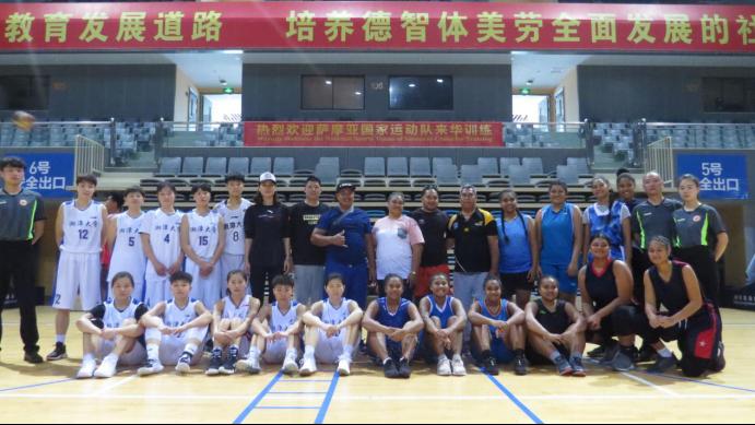 湘潭大学女篮队与萨摩亚国家女篮队合影