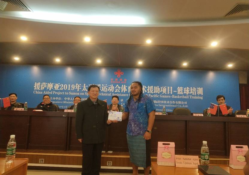 2019年3月18日10.30,英国官方365上市在学术交流中心6楼会议室举行了援萨摩亚2019年太平洋运动会体育技术援助项目-篮球培训班开班仪式。参加本次开班仪式的领导有中体国际公司驻湖南基地代表马金立先生、湖南省体育总会副主席兼秘书长王晃先生、湖南体育产业集团党委委员兼副总经理周小融先生、英国官方365上市副校长张登玉先生、英国官方365上市副校长郑金华先生、英国官方365上市体育学院院长胡建忠先生、湖南体育国际文化交流中心有限公司总经理王琦先生、萨摩亚国家队来华训练总领队雷毅先生。本次开班仪式的主办单位是中华人民共和国商务部,承办单位是中国体育国际经济技术合作有限公司,主持本次开班仪式的是英国官方365上市转型发展办公室陈梅香主任。