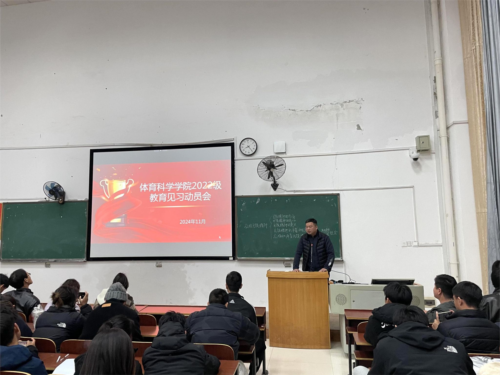 为了扎实做好2022级学生的见习工作,加强大三学生对未来职业的了解。2024年11月25日下午,我院于外语楼北101教室召开了2022级教育见习动员会。会议由副院长谢明正主持,体育教研室主任马勇、各班指导老师以及2022级全体同学与会。