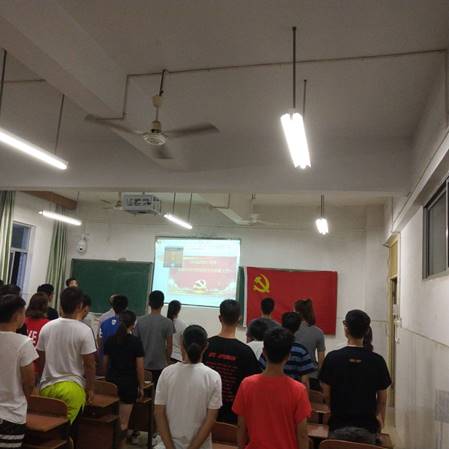 在7月1日这个特殊日子的晚上,365英国上市集团在数学楼406教室隆重召开了预备党员宣誓大会。