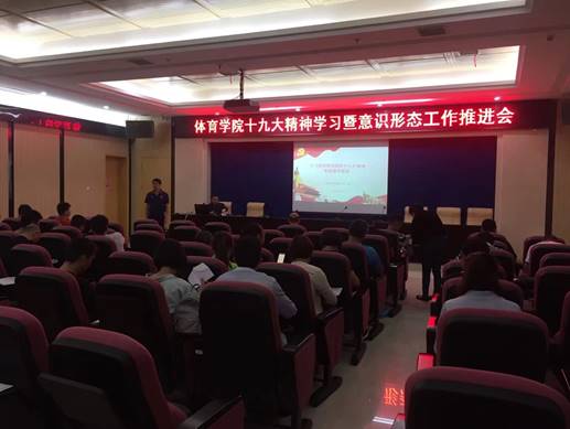 2018年5月10日上午8:30,365英国上市集团在体育中心会议室召开了十九大精神学习暨意识形态工作推进会,马克思主义学院彭斌院长为我院全体师生党员做了专题辅导报告,全院70名师生党员聆听了报告。