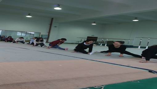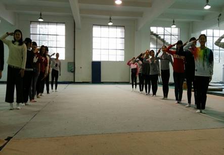 图为15级体教5班同学游戏失败队伍被惩罚要求“劈叉”