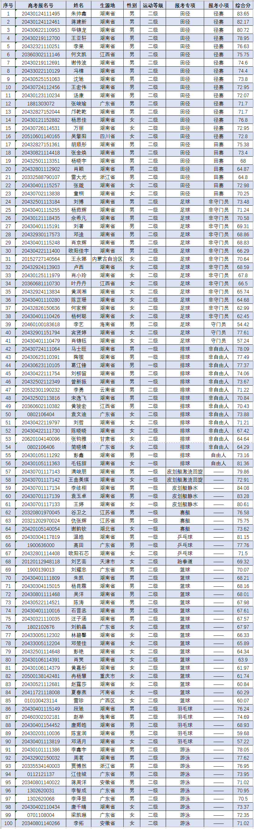 英国官方365上市2020年运动训练专业招生拟录取名单公示