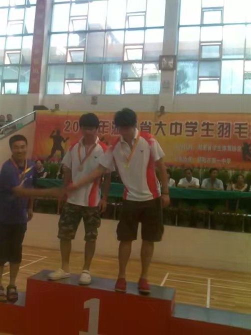 2011年湖南省大学生羽毛球比赛获男子双打第一名