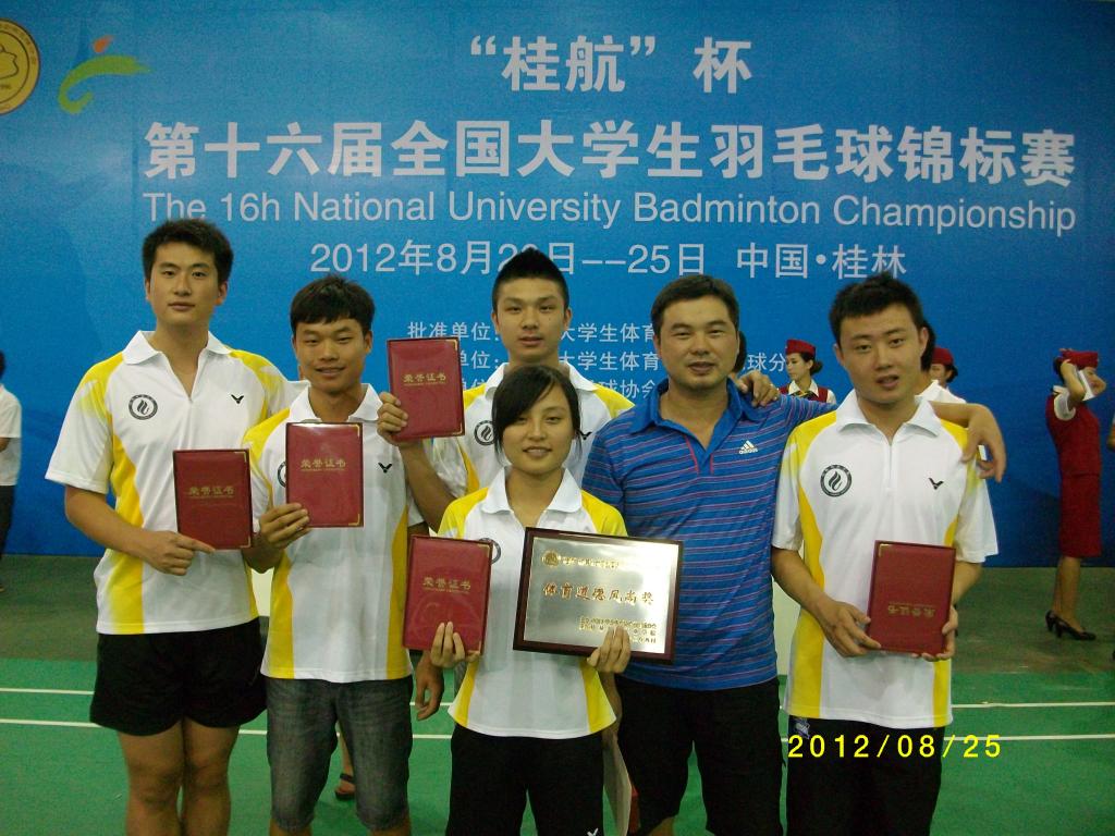 2012年第十六届全国大学生羽毛球锦标赛获得男子团体第六名