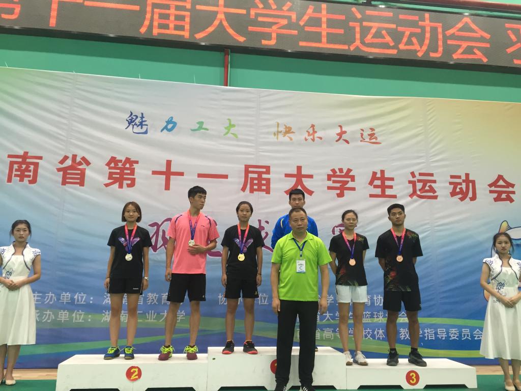 2018年湖南省第十一届大学生运动会羽毛球比赛获混双冠军