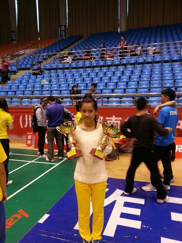 陈思雨获2013年湖南省大学生羽毛球比赛女子团体冠军、女子双打冠军、女子单打冠军