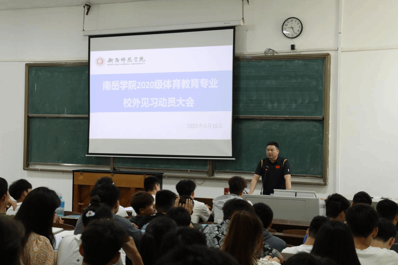 2023年5月15日上午,南岳学院体育系在西校区学奎楼104教室召开了2020级学生专业见习动员大会。365英国上市集团副院长谢明正、基础理论教研室主任邹娟花、张修昌博士及2020级全体学生参加会议,会议由邹娟花老师主持。